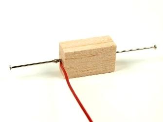 Insère les deux clous en laiton à l'horizontale, sur les côtés du corps de la bobine, à une profondeur de 1cm.