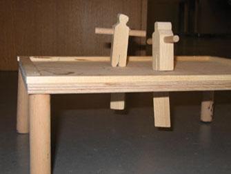Im Handgriff unter der Holzplatte ist ein Magnet eingebaut. So können die Boxer im Kampf geführt werden.