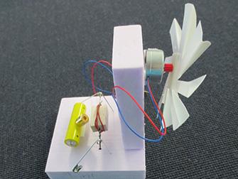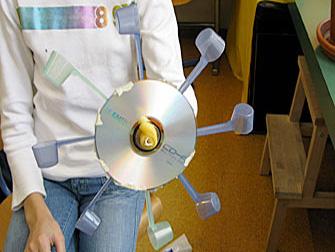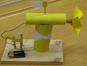 Jasmine (12) hat mit dem ausgebauten Motor einen Ventilator gebaut. Mit dem Windrad könnte man die Batterie unter Umständen auch aufladen. Mehr dazu dann im Lernanlass "Strom aus Wind und Wasser" .