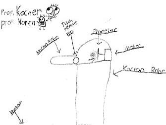 "Wir haben aus Glacestängel einen Propeller gebaut, der unser Boot antreibt. Es fuhr aber nicht so schnell." schreiben Fabian und Fabian, beide 12 Jahre alt.