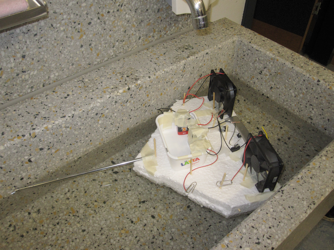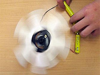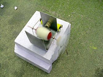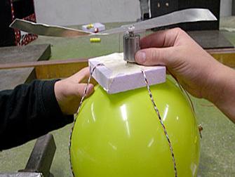 Die Jungs haben mit einem ausgebauten Motor und einem Propeller eine "Kanone" gebaut. Gesteuert wird die über den roten Transformer hinten.