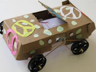 Das Peace-Mobil fährt mit zwei Riemen-Antrieben