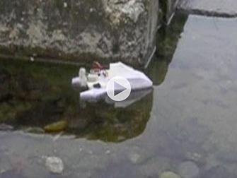 Gefalteter Papierpropeller aus dem Lernanlass, Schilderung der aufgetretenen Probleme beim Schwimmversuch des Bootes.