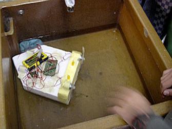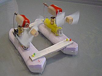 Elias, 12 J. zu seinem Boot: "Ich habe zwei Ventilatoren aus einem Computer als Antrieb für mein Schiff eingebaut. Das hat prima geklappt."
