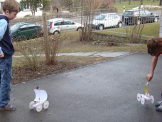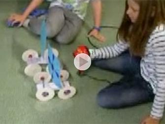 "Wir versuchten die Flugweite unseres Flitzers mit Hilfe von Verschiedenen Flügeln zu verlängern" schreiben uns die Erfinderinnen der 6. Klasse in Tübach.