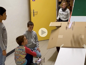 Questi due alunni della sesta classe di Baltschieder vogliono usare il vento per "navigare" nel cortile della scuola.