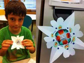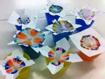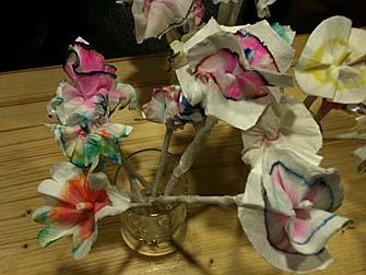 Die Kinder von Patra Seifert haben eine eigene Methode entwickelt. In der Mitte der Blüte ist ein eingerolltes Papier befestigt. Das Wasser steigt hoch und bringt die Blüte zum Blühen.