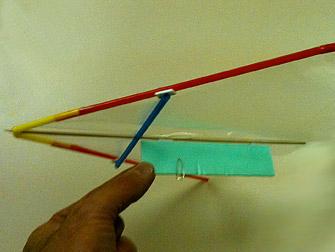 Als die Büroklammern an der richtigen Stelle war, hatte der Deltasegler die richtige Schräge und schwebte zu Boden.