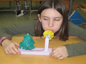 Zuerst waren die Kabel zu lang. Wir haben sie gekürzt, damit weniger Energie verloren geht. Dann haben wir die Schnittstelle der zusammengefügten Kabel mit Röhrli isoliert. Die Legomännchen waren zu schwer. Also haben wir Männchen aus Röhrli gebastelt. Das LED wollten wir eigentlich oben am Karussell befestigen, aber das Kabel verdrehte sich immer. Deswegen haben wir einen Scheinwerfer gebaut, der das Karussell beleuchtet. Die gelben Windrädchen waren am besten, unsere eigenen hatten nicht so viel Kraft.