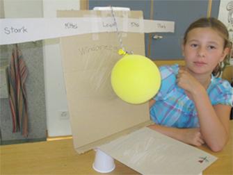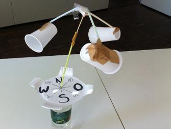 Nico (11 Jahre alt): "Mein Recyclinganemometer dreht sich auf einer Kugel...