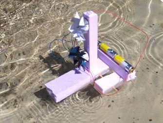 Yanick schreibt uns: "Nachdem wir das Tuc Tuc gemacht hatten, mussten wir ein anderes Boot herstellen. Ich habe mich für ein Boot mit einem mit Strom angetriebenen Rad entschieden, weil das niemand anderes in unserer Klasse gemacht hat und es ein ganz anderer Antrieb ist als das mit der Wärmeenergie."
