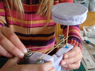 Damit das Transmissionsrad auch wirklich in Schwung kommt, haben die zwei Mädchen zwei Motoren eingebaut.