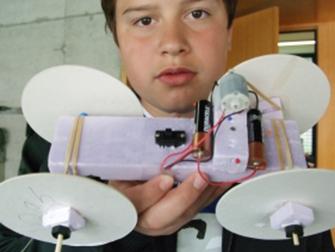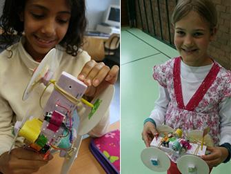 Tatjana, Claudia, Jessi, (alle 11) aus der Klasse von Ruedi Gentsch treiben dieses Long-Vehicle mit je einem Motor auf jeder Achse an.