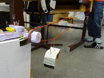 Keenan (12) "Es ist eine Seilbahn, die an jeder Seite von einer Schnur gezogen wird. Jede Schnur hat einen Motor, der das Seil aufrollt. So wird die Seilbahn auf die eine oder andere Seite gezogen."