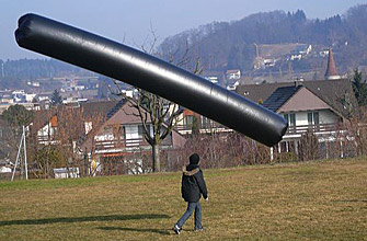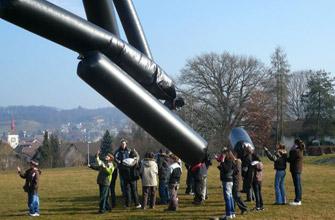 Wenn die Sonne den schwarzen Solarballon bescheint, wird die Luft im Innern erwärmt. Da sich die Luftteilchen viel freier bewegen können, als die Atome im Wasser, schaffen sie sich mehr Platz und stossen die benachbarten Atome zur Seite. Das kann man beobachten: Der Solarballon wird praller, ohne dass neue Luft dazukommt.