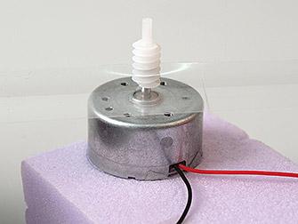 Auf der Fotografie siehst du, dass das Schneckenzahnrad an einem Stück Klebstreifen "zupft".