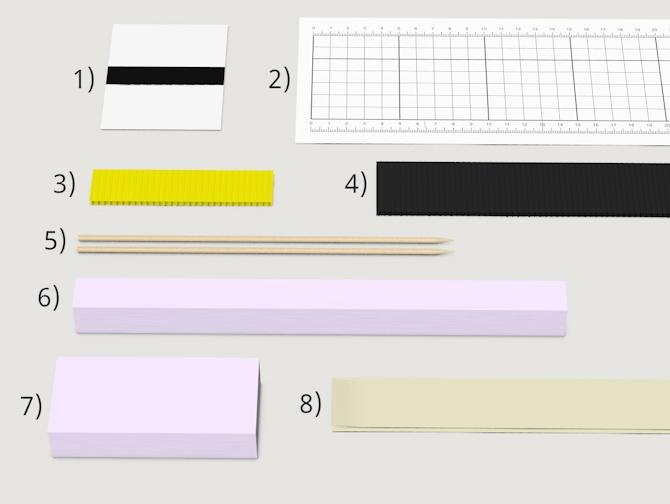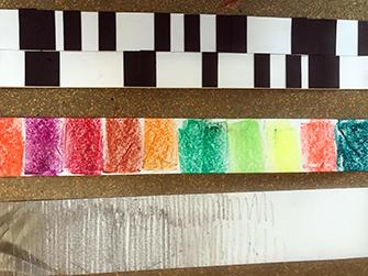 - Klebe verschieden breite Flächen aus schwarzem Papier auf einen Streifen weisses Papier.