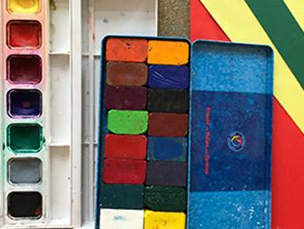 Tönen das selbst gemischte Blau, das blaue Papier und die blaue Wachsmalkreide gleich?