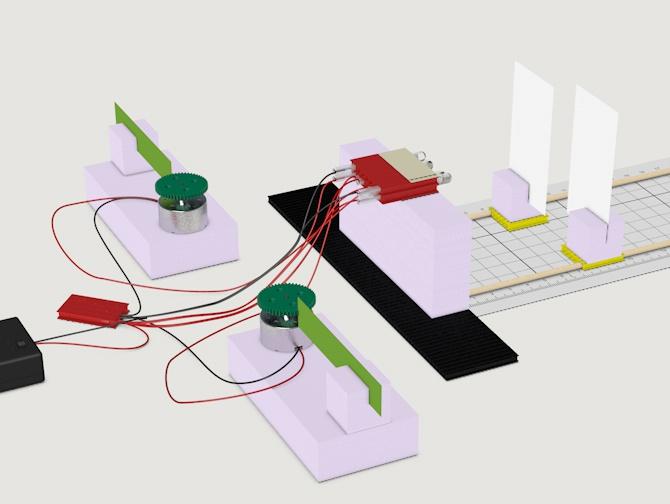Mache deine Experimente zuerst nur mit einem Tonerzeuger. Ziehe dazu einen Papierstreifen vom grünen Zahnrad weg: