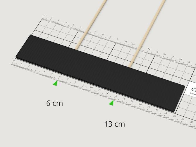 Stecke einen zweiten Rundstab bei 13 cm in die schwarze Hohlkammerplatte (ca. 2cm tief).
