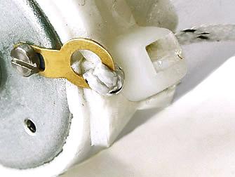 Befestige die Schlaufe an der goldfarbigen Öse des Motors.