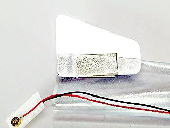 Befestige damit den dunkeln Hartschaumring. Platziere ihn so, dass er vorne 2 mm über den Rand des Generators hinausragt.